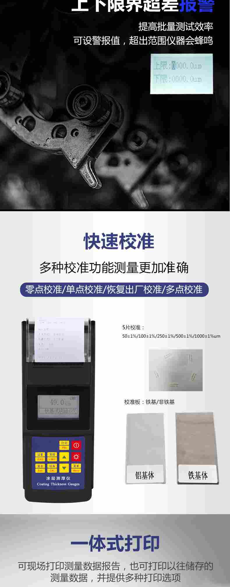 ● 采用了磁性和渦流兩種測厚方法,可完好地測量:磁性金屬基體(如鋼、鐵、合金等)上非磁性覆層厚度(如鋅、鋁、鉻、銅、橡膠、油漆等);非磁性金屬基體(如銅、鋁、鋅、錫等)上非導電覆層厚度(如:橡膠、油漆、陽極氧化膜等);