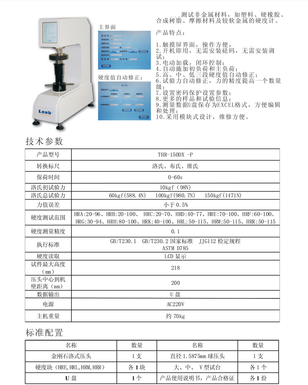 測試非金屬材料,如塑料、硬橡膠、合成樹脂、摩擦材料及較軟金屬的硬度計。