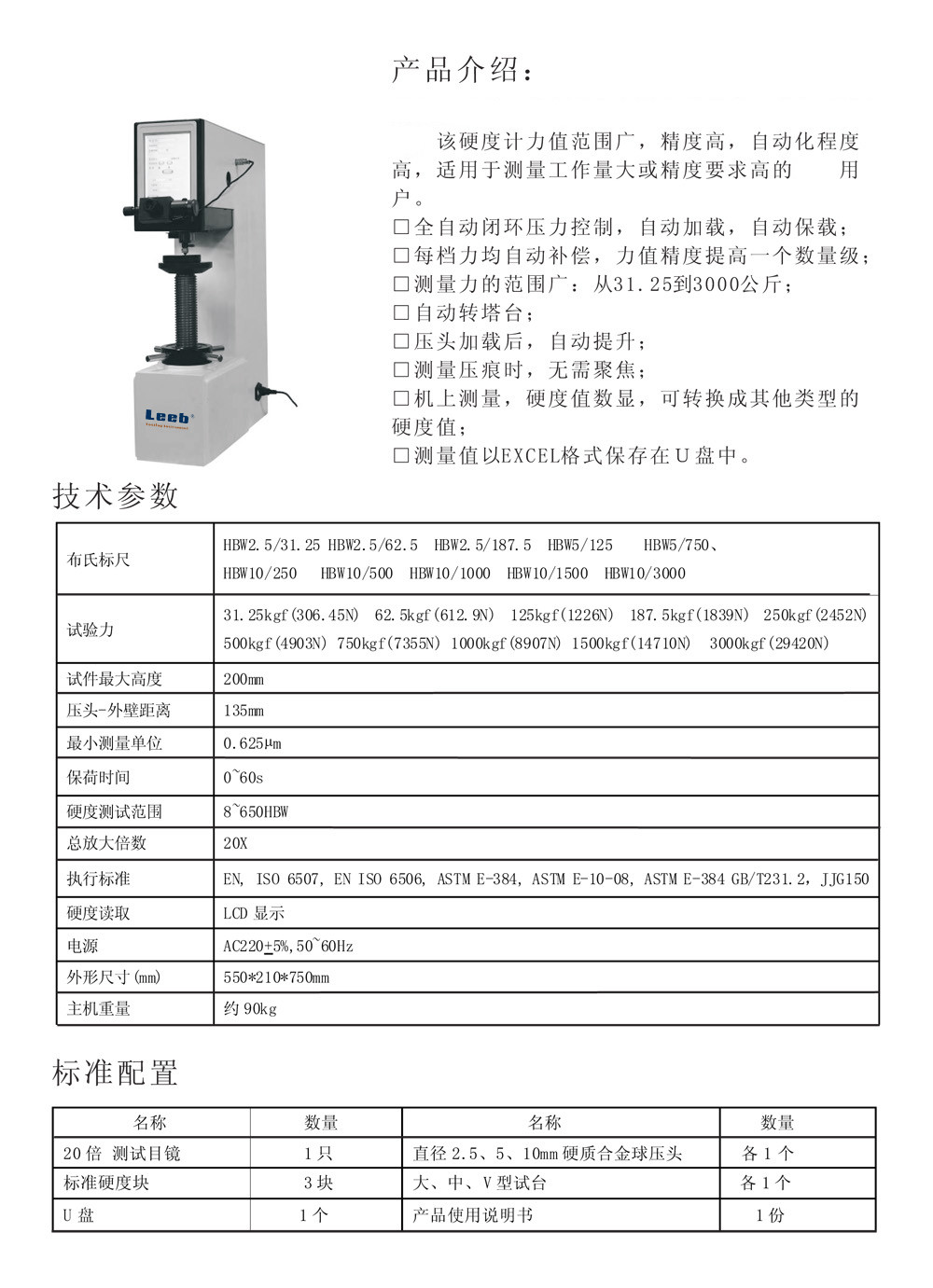 該硬度計(jì)力值范圍,自動(dòng)化程度高,適用于測量大或精度要求高的用戶。