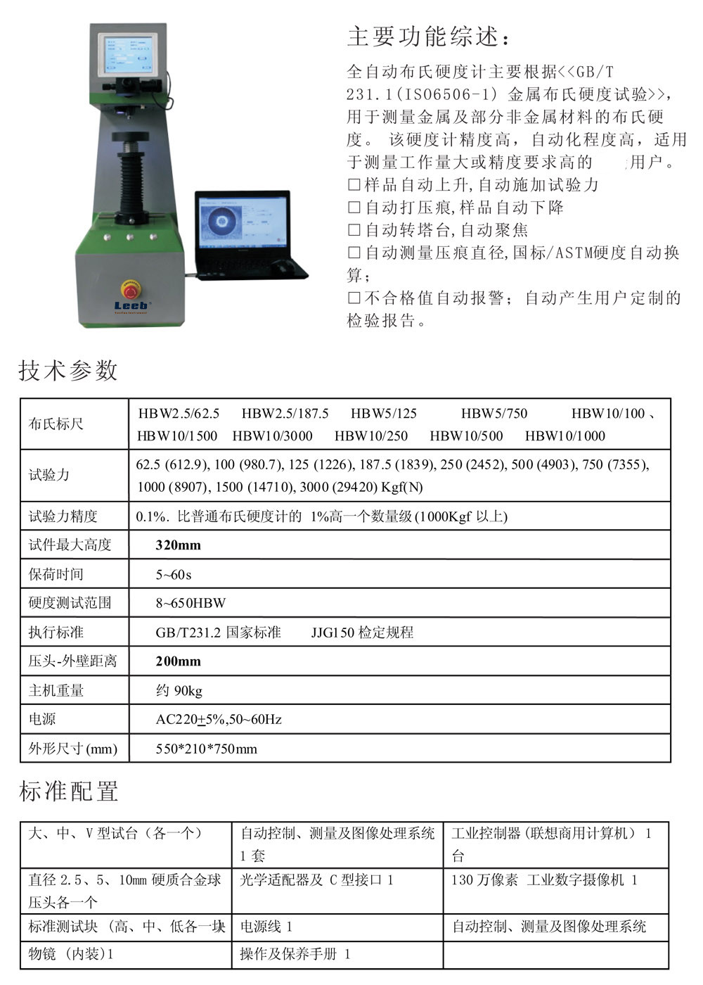 全自動布氏硬度計主要根據(jù)《GB/T231.1ISO6506-1)金屬布氏硬度試驗》,用于測量金屬及部分非金屬材料的布氏硬度。該硬度計精度高,自動化程度高,適用于測量工作大或精度要求高的用戶。