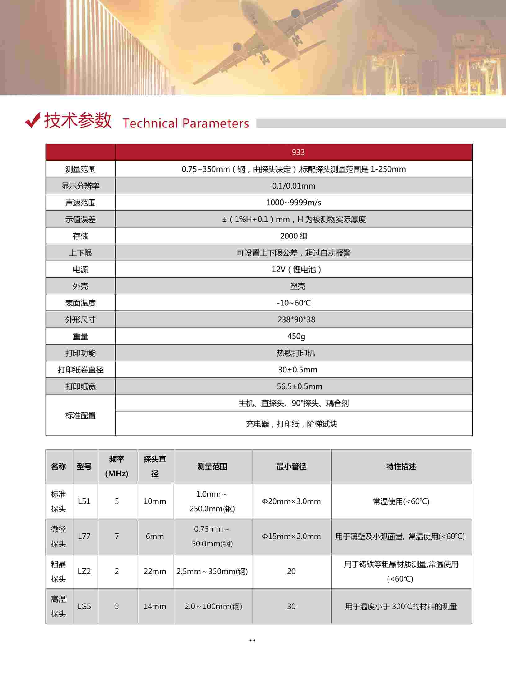 主機(jī)、直探頭、90°探頭、充電器、耦合劑,階梯試塊, 文件資料、打印紙、儀器箱,USB數(shù)據(jù)軟件 |