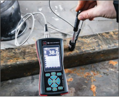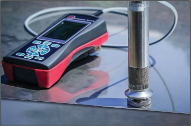 該儀器采用超聲接觸阻抗法(UCI),符合ASTM A1038標準,是一種非直接測量壓痕的動態(tài)壓入法。端部鑲有特定壓頭(如金剛石壓頭)的振動桿受到激勵做縱向超聲振動,用一定的試驗力將壓頭壓入試驗表面,振動桿的縱向振動將受到阻抗,諧振頻率發(fā)生變化,從而得出硬度值。這種硬度測量方法已經(jīng)在各國大范圍使用,并且已經(jīng)在工業(yè)領(lǐng)域使用了50多年。