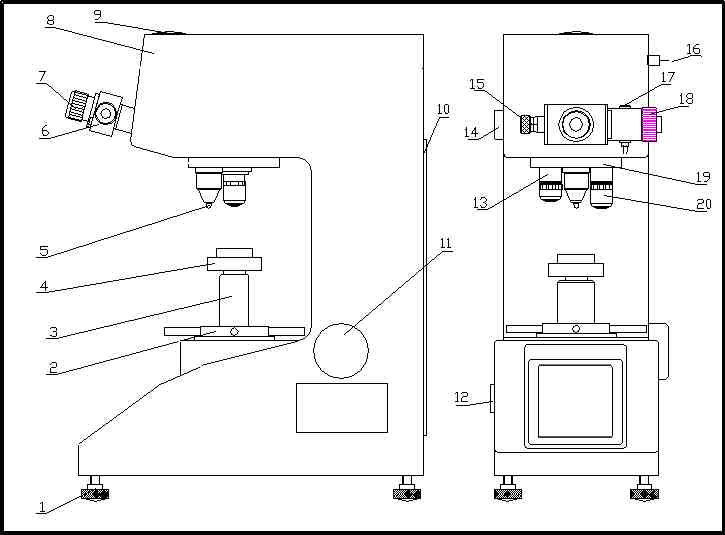 一體化鑄鋁機身,不變形,不位移,砝碼加載結(jié)構(gòu),性能穩(wěn)定,測量精度高,重復(fù)性好。硬度換算功能。物鏡與壓頭可自動切換,定位精準。7吋高靈敏度觸摸屏操作顯示。選配通訊協(xié)議后可以和電腦通訊,實現(xiàn)電腦自動控制。菜單式結(jié)構(gòu),實驗過程自動化,操作簡便。高清光學(xué)系統(tǒng)和物鏡,光源亮度可以10級調(diào)節(jié)。測試結(jié)果和數(shù)據(jù)處理,USB數(shù)據(jù)一鍵導(dǎo)出EXCEL格式報告。對角線長度D1和D2編碼器輸入,方便快捷,減少人為讀數(shù)誤差。顯示界面采用了菜單式結(jié)構(gòu),人機對話非常友好,易于操作,安裝調(diào)試簡單。