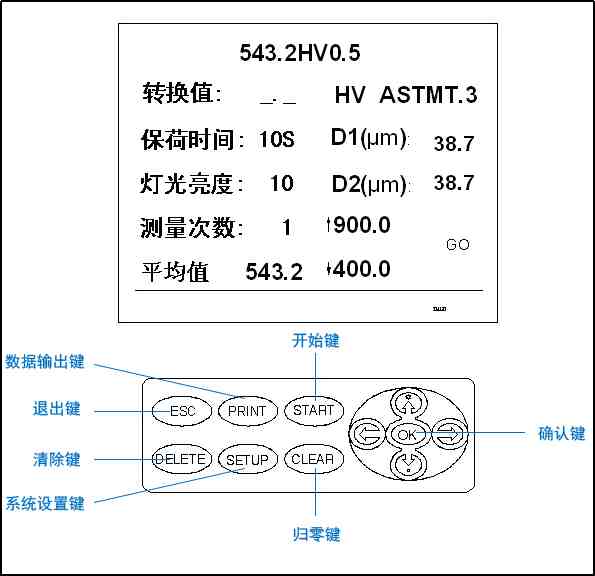 5.1吋大屏LCD顯示,菜單式結(jié)構(gòu),操作簡便,高清光學系統(tǒng),光源亮度可以20級調(diào)節(jié),帶硬度值轉(zhuǎn)換功能,硬度上下公差判斷,對角線長度D1和D2編碼器輸入,減少人為讀數(shù)誤差;定位準確。