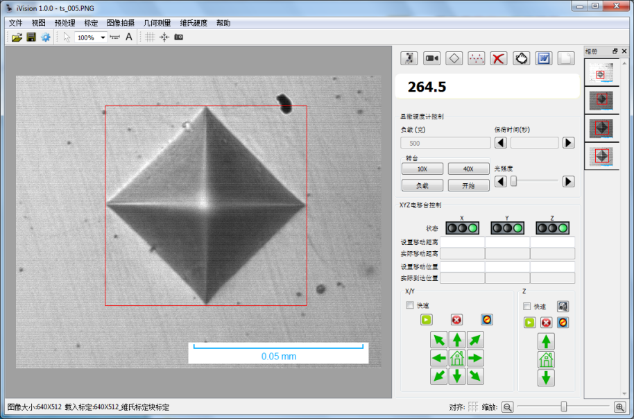 3.每點(diǎn)測(cè)量圖像被保存可用于最后手動(dòng)修正;修正時(shí)只需要鼠標(biāo)拖拉壓痕四邊形邊框,硬度測(cè)量值、統(tǒng)計(jì)、和測(cè)量像冊(cè)等自動(dòng)更新。