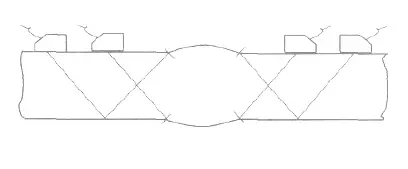 1.2.3 2 次波檢測(cè)時(shí), 可用手指沾油拍打遠(yuǎn)離探頭側(cè)的焊角, 焊角回波會(huì)明顯跳動(dòng)。
