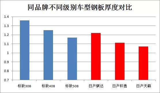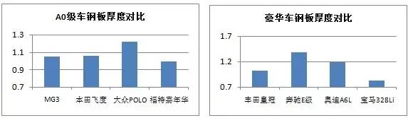 從整體來看我們可以發(fā)現(xiàn),表現(xiàn)差的并不是日系車,而恰恰是我們的自主品牌。抽樣調(diào)查的幾個(gè)自主品牌汽車鋼板厚度平均值均僅在1mm上下,而有些品牌車型的鋼板厚度平均值甚至還不到1mm。