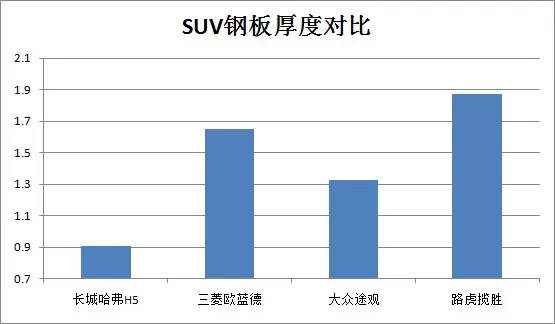 3)SUV鋼板厚度平均值高