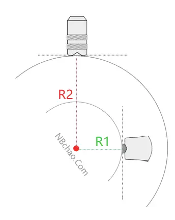 如圖所示,一般情況下,R1能測的曲面涂層,也同樣適用于R2的曲面涂層,反之,R2能測的曲面涂層則不一定能適用于比之更小的R1被測物涂層。