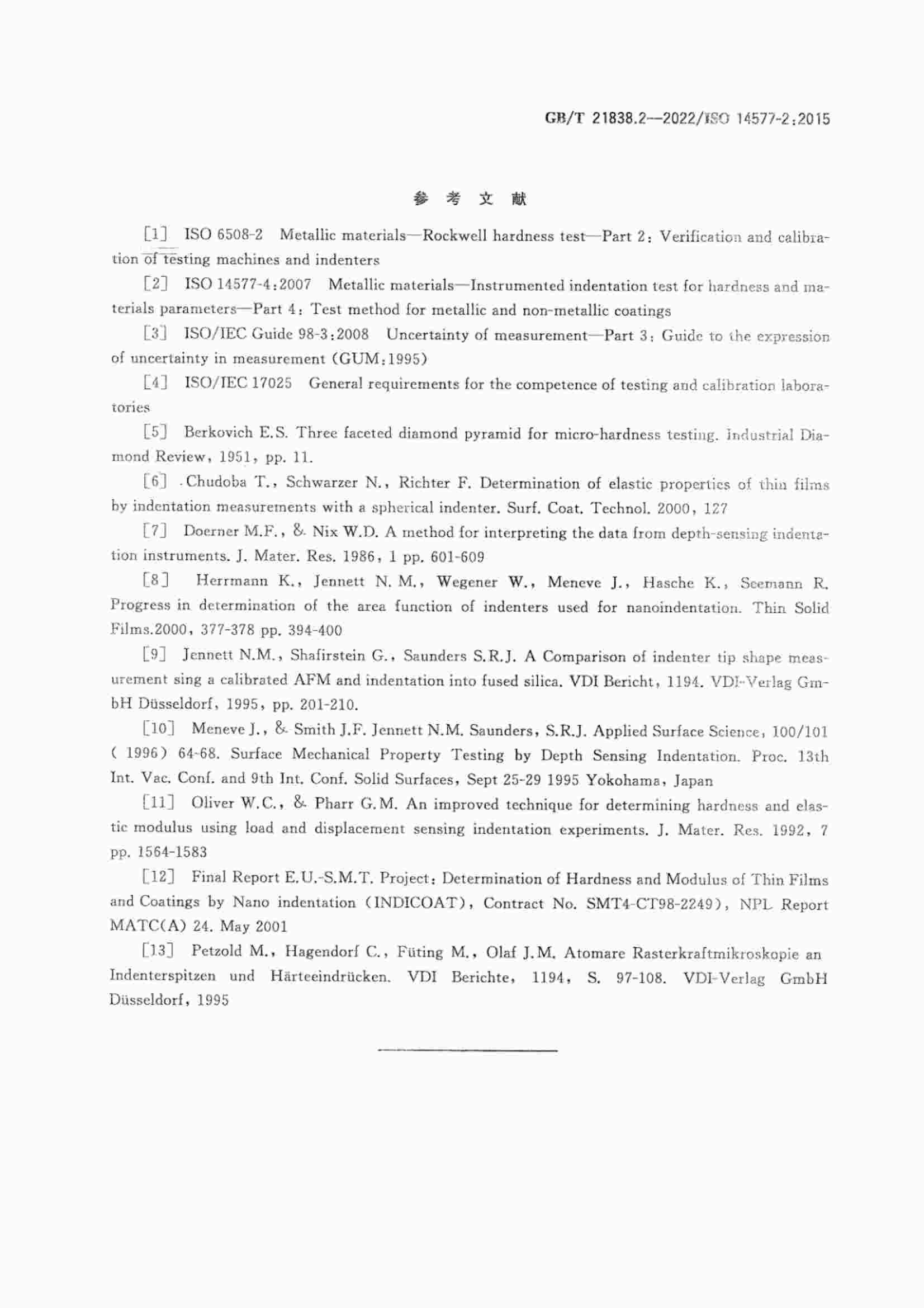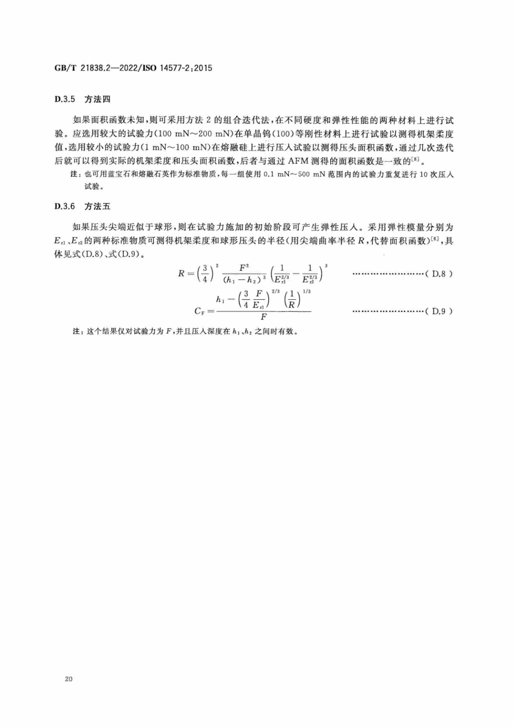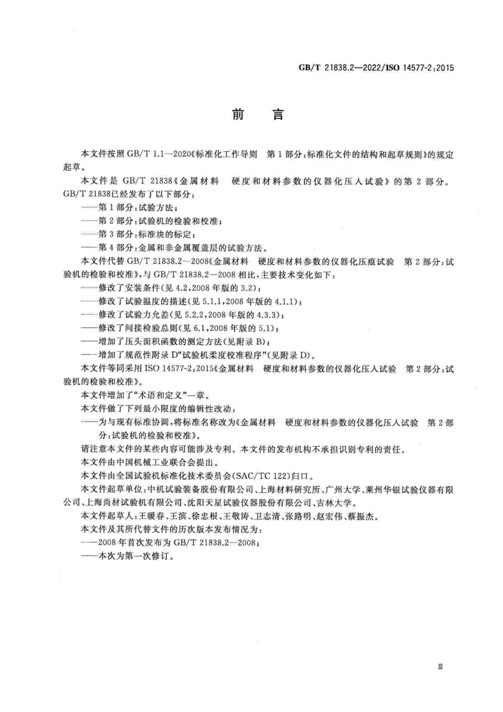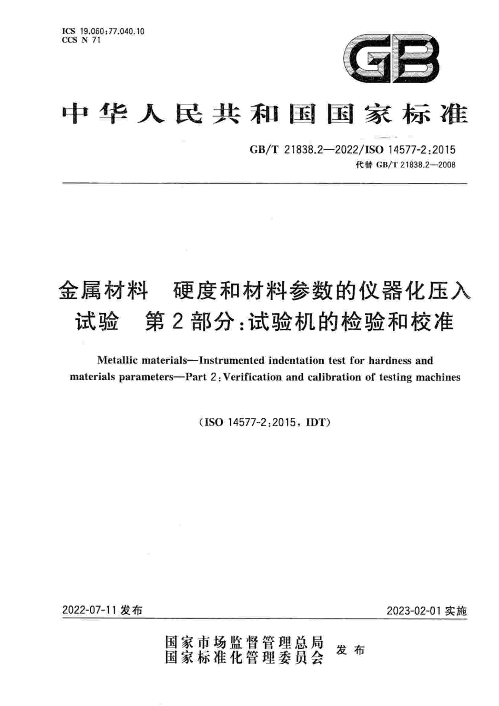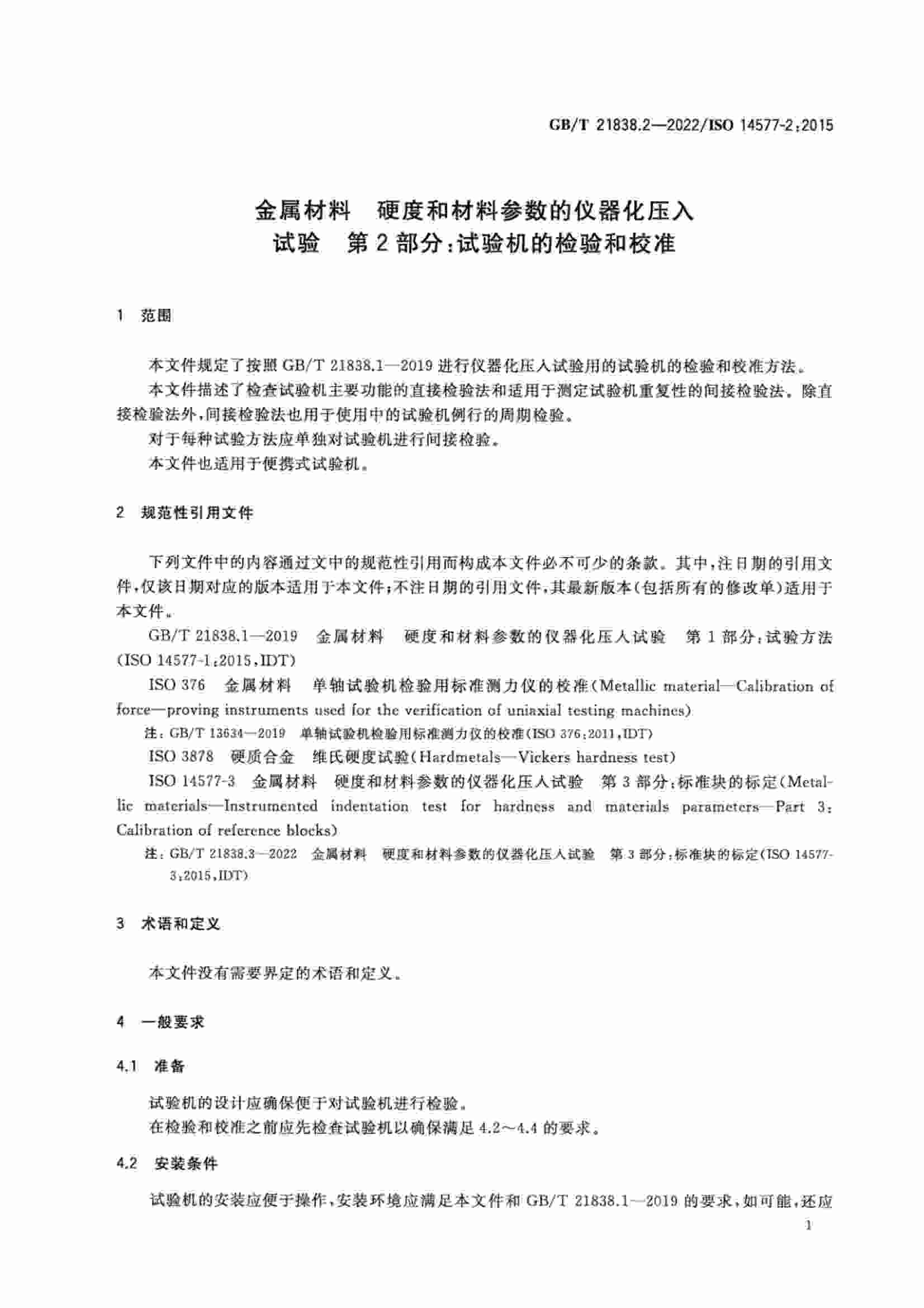 《GBT 21838.2-2022 金屬材料 硬度和材料參數(shù)的儀器化壓入試驗(yàn) 第2部分:試驗(yàn)機(jī)的檢驗(yàn)和校準(zhǔn)》
