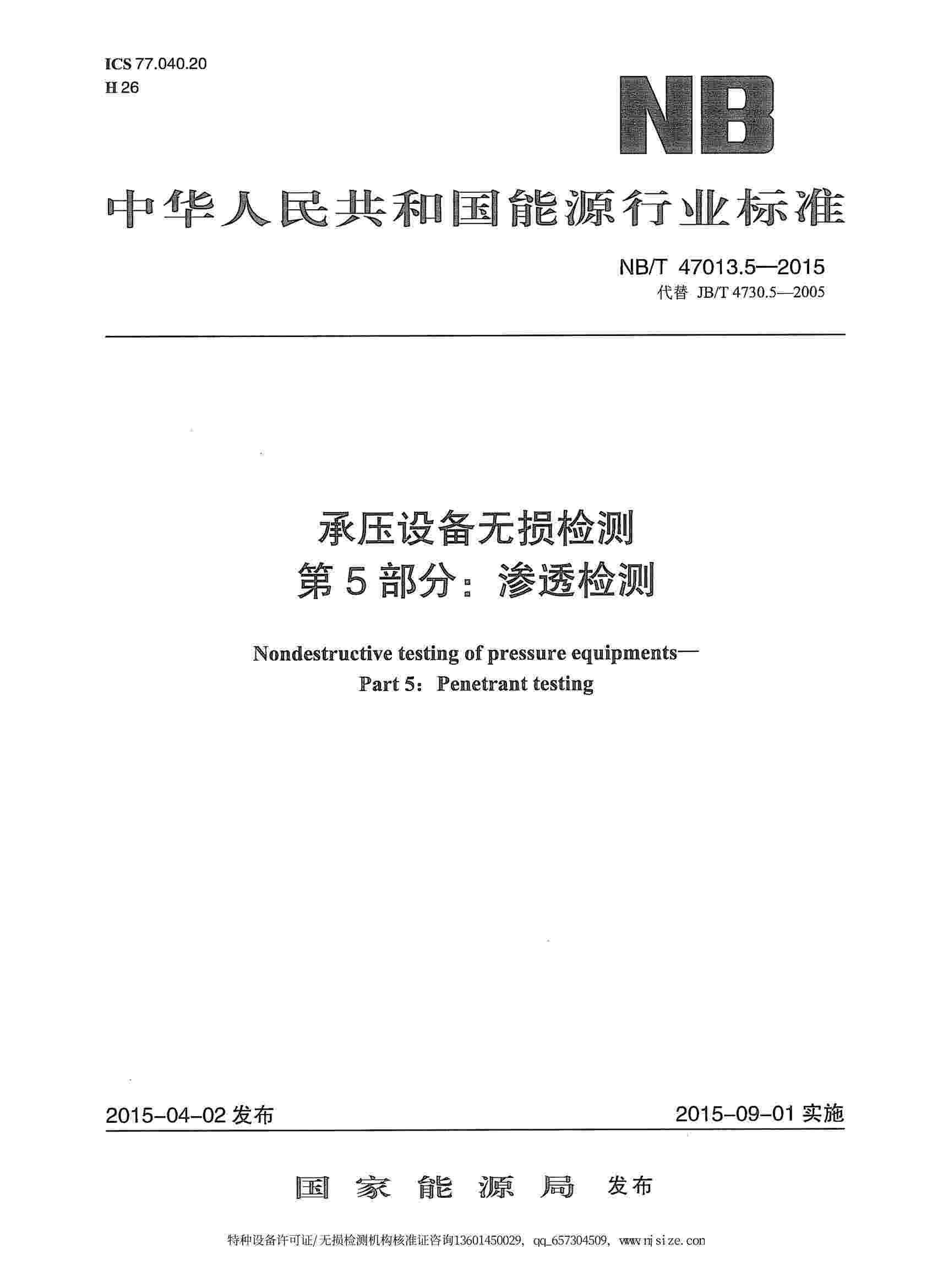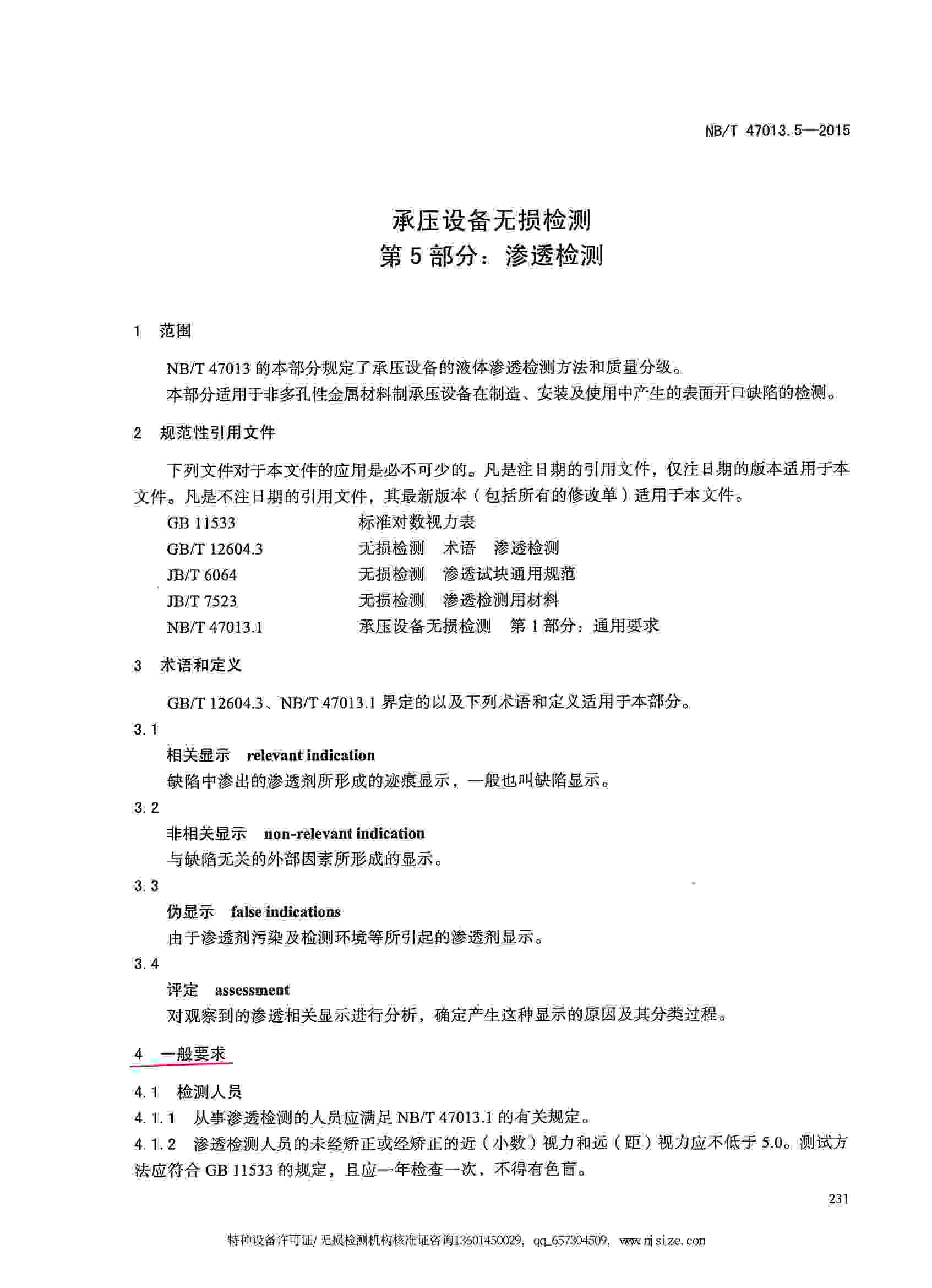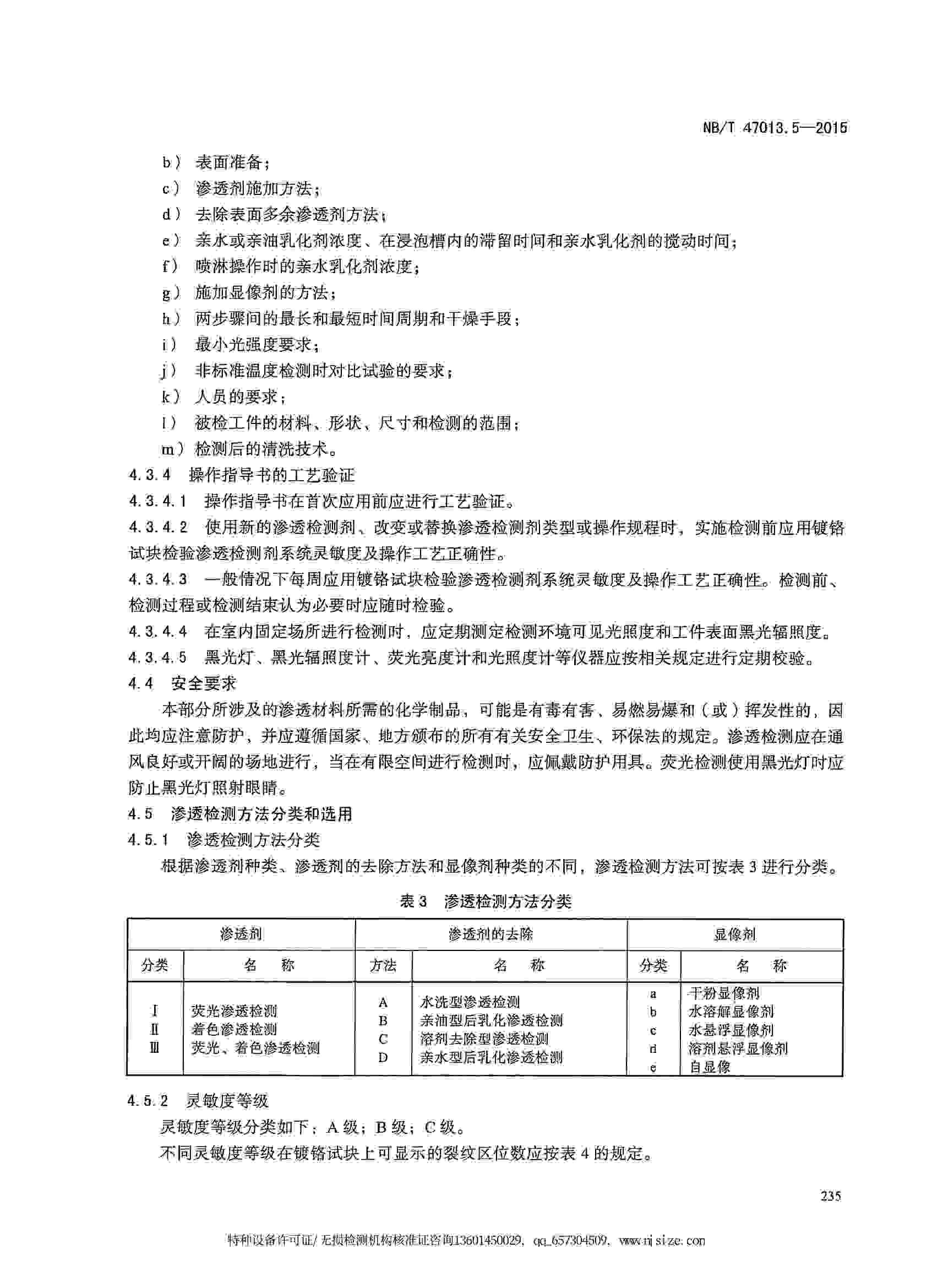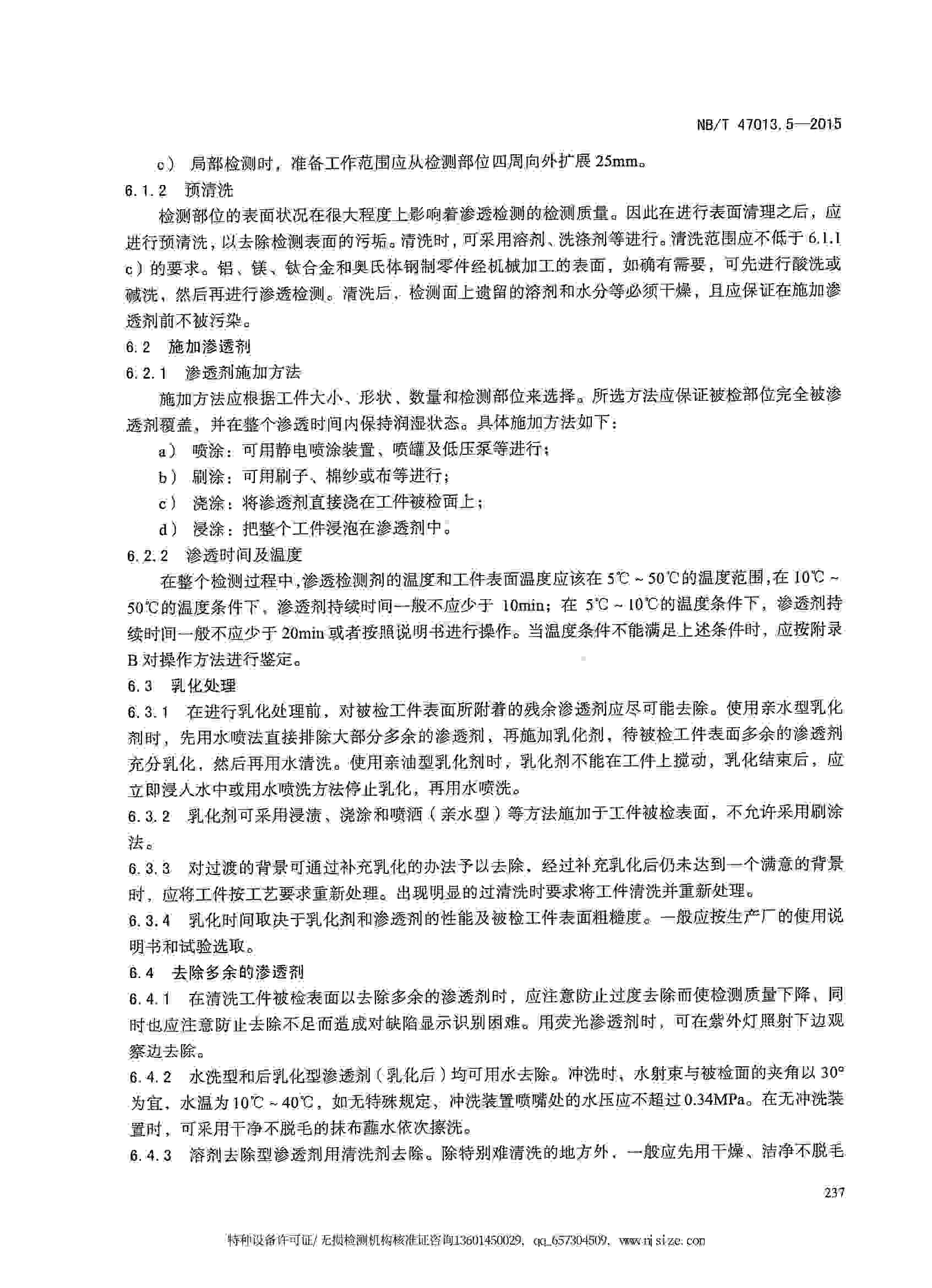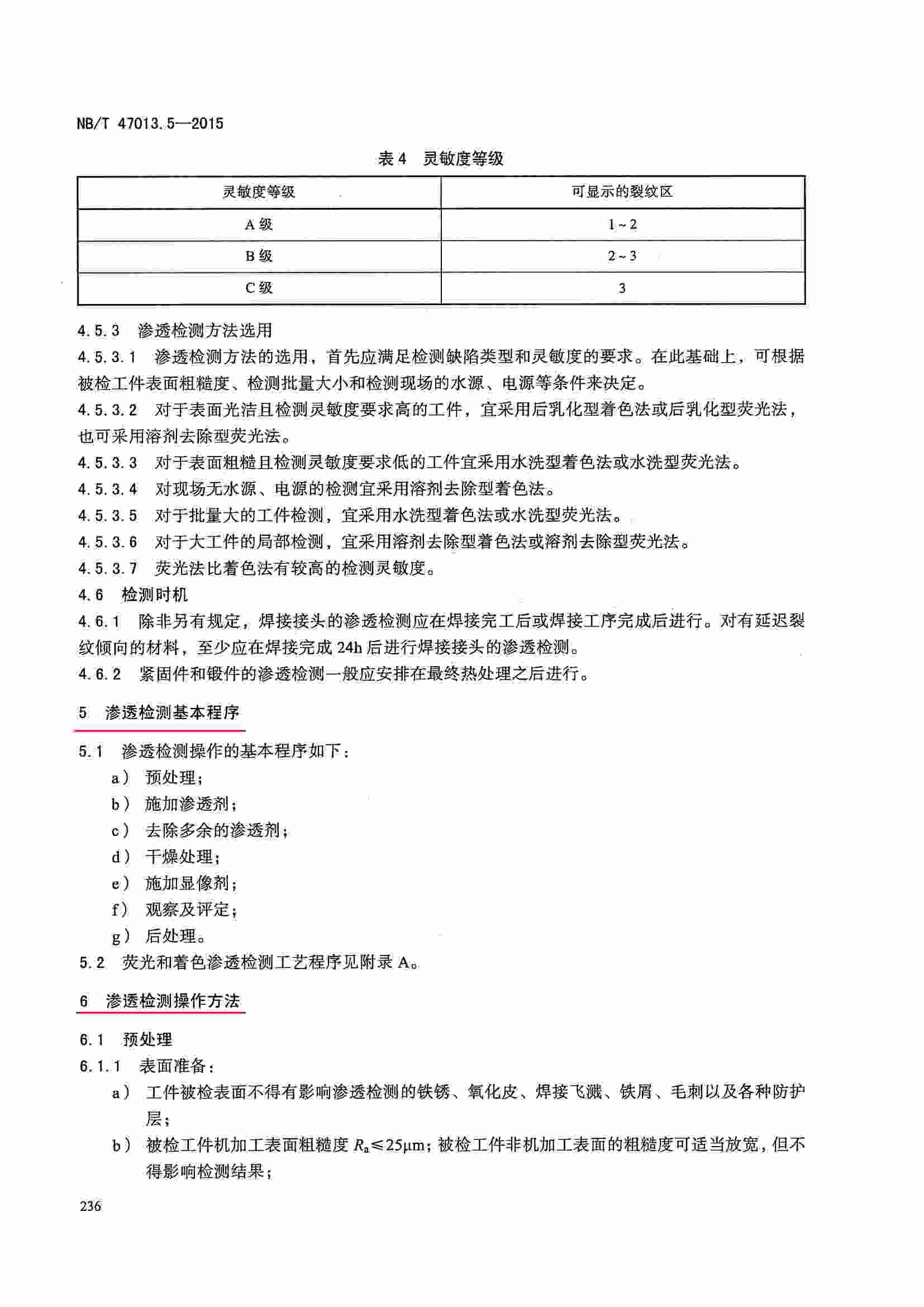 NB/T47013.5-2015 承壓設備無損檢測 第5部分:滲透檢測