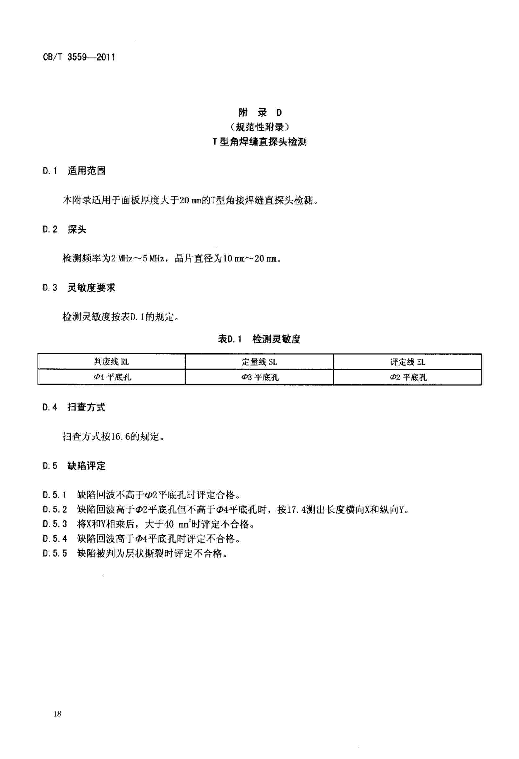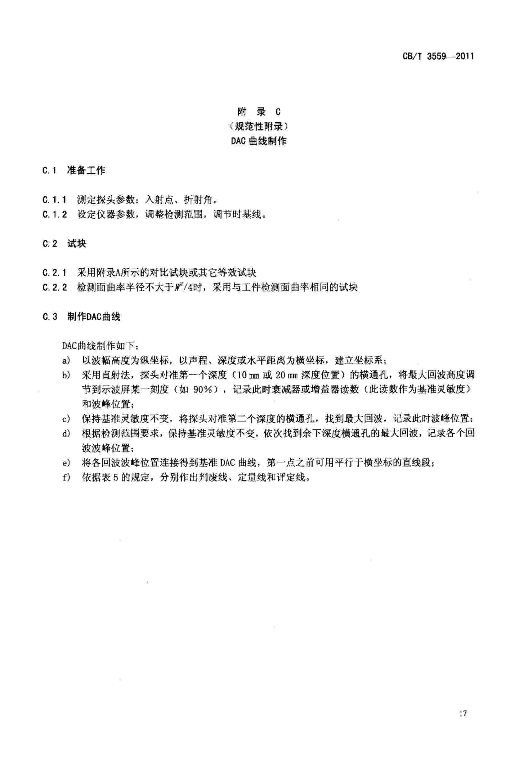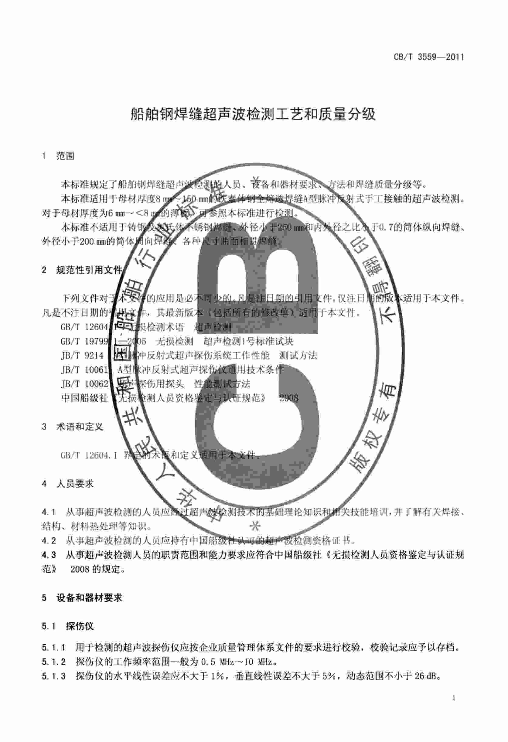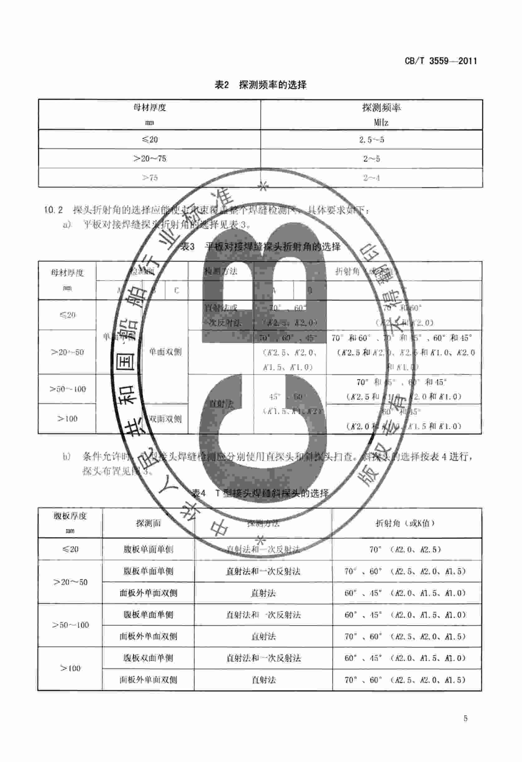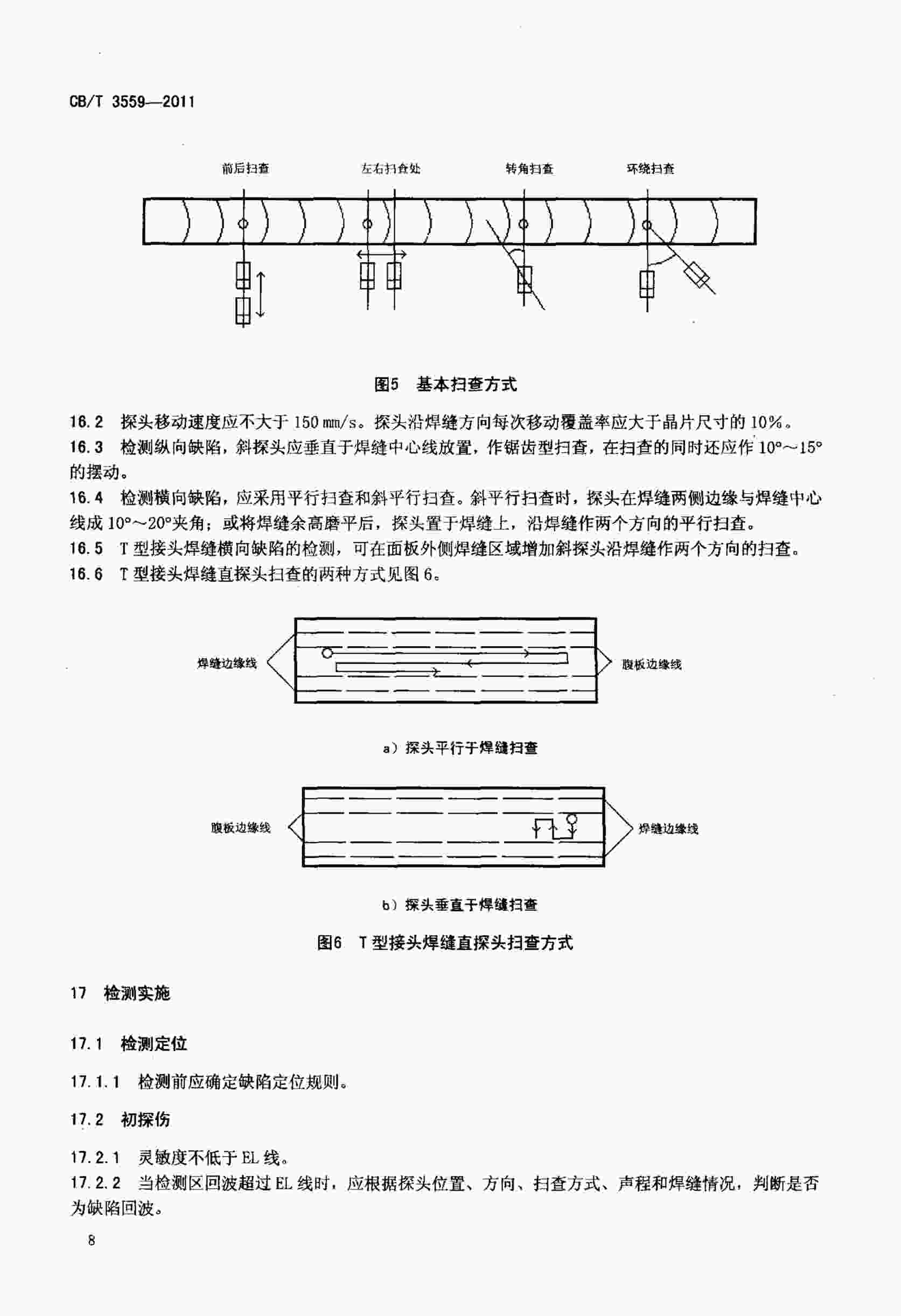 CBT3559-2011船舶鋼焊縫超聲波檢測工藝和質(zhì)量分級標準