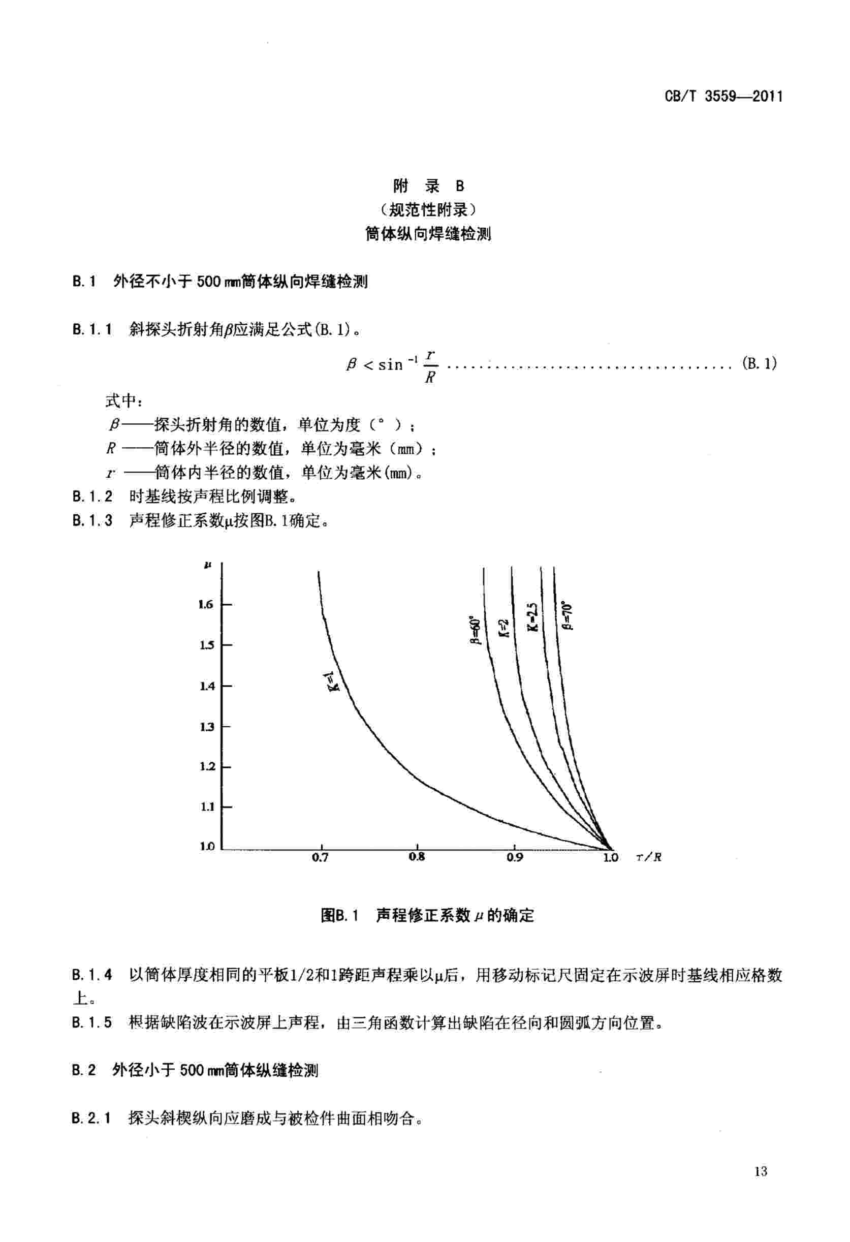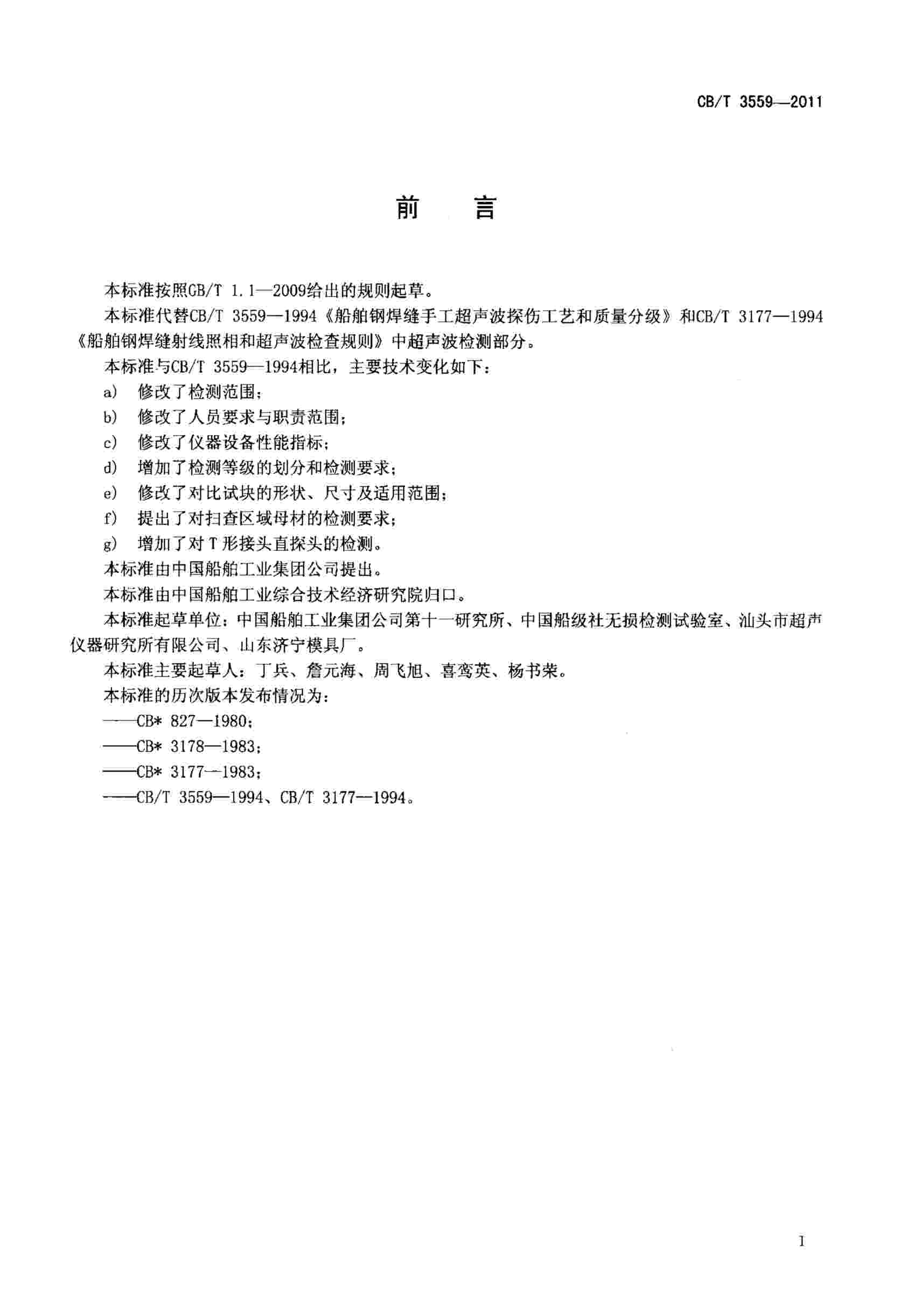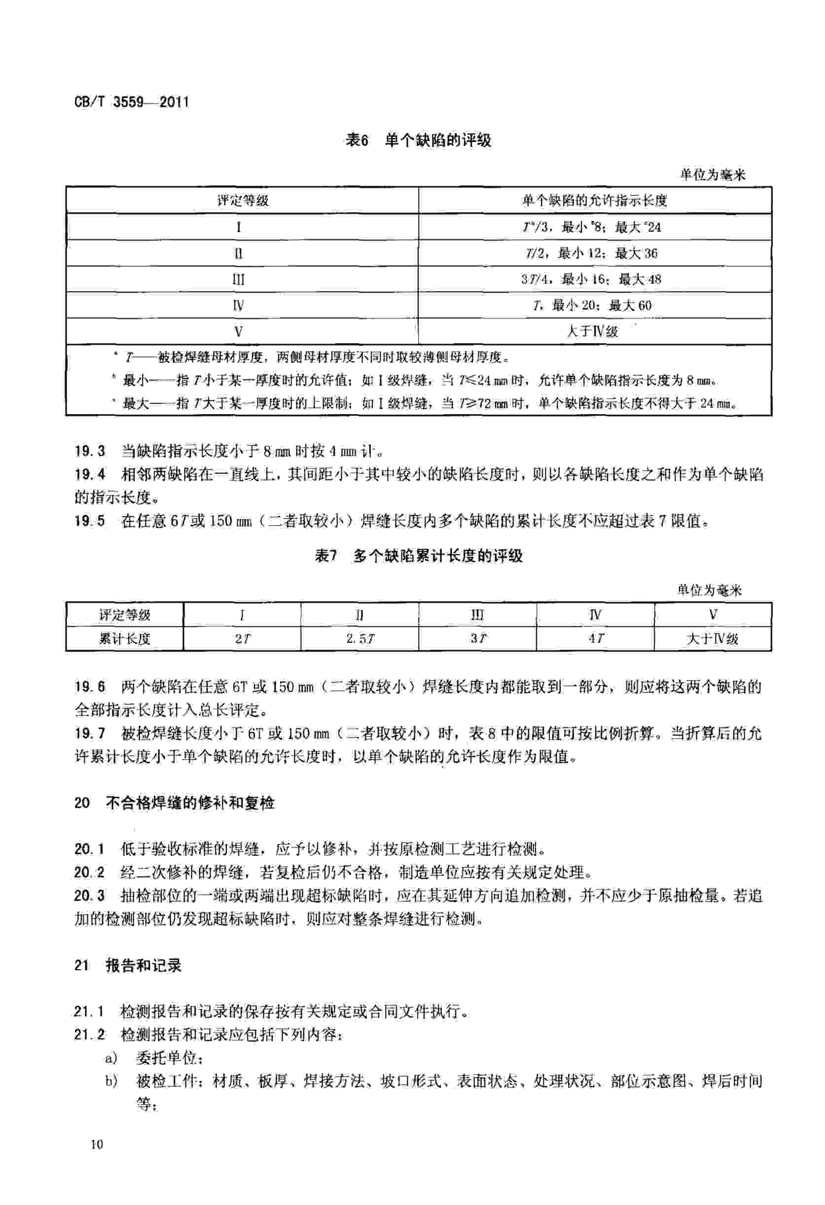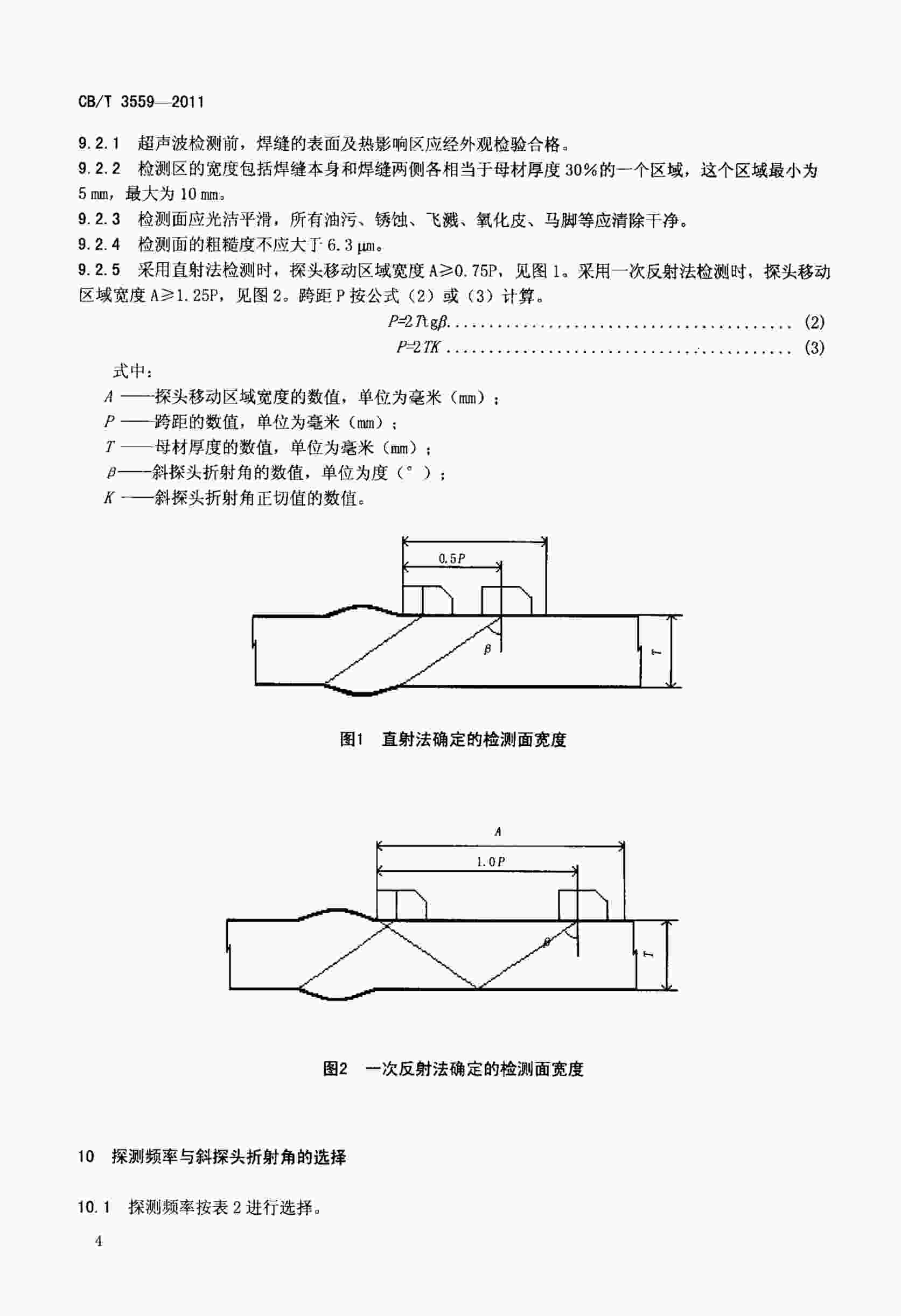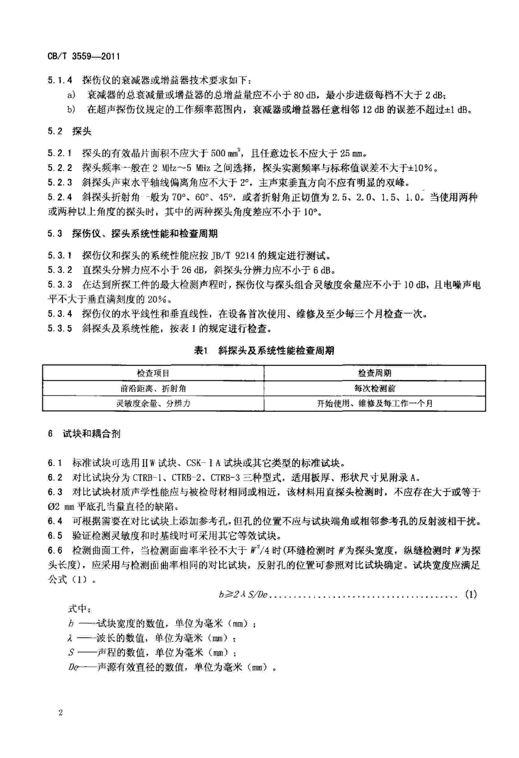 CBT3559-2011船舶鋼焊縫超聲波檢測工藝和質(zhì)量分級標準