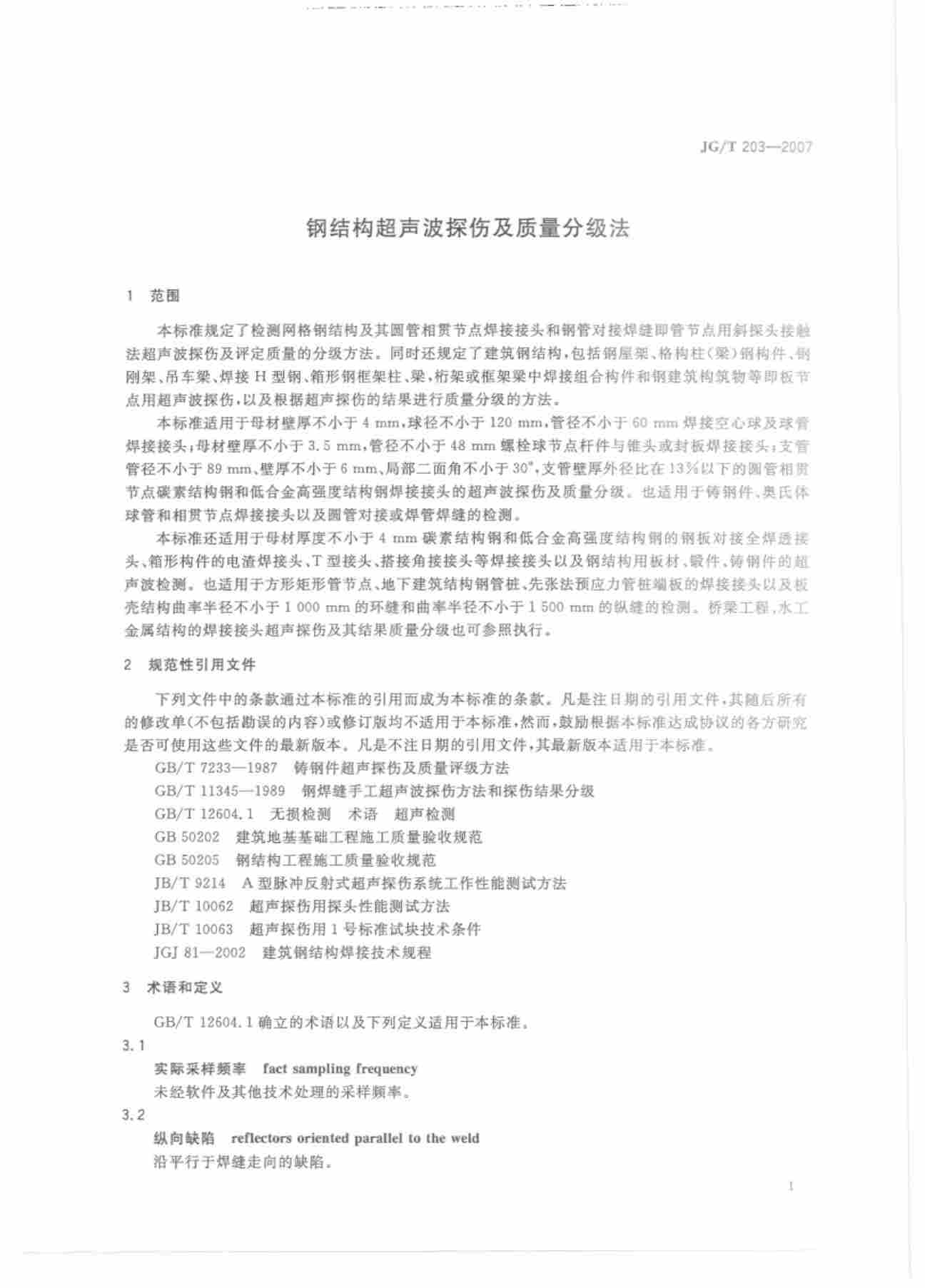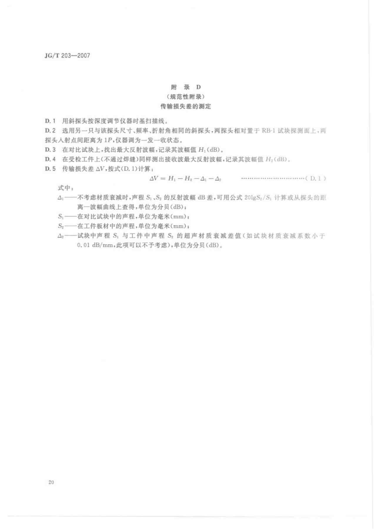 附錄d:JGT203-2007 鋼結(jié)構(gòu)超聲波探傷及質(zhì)量分級(jí)法